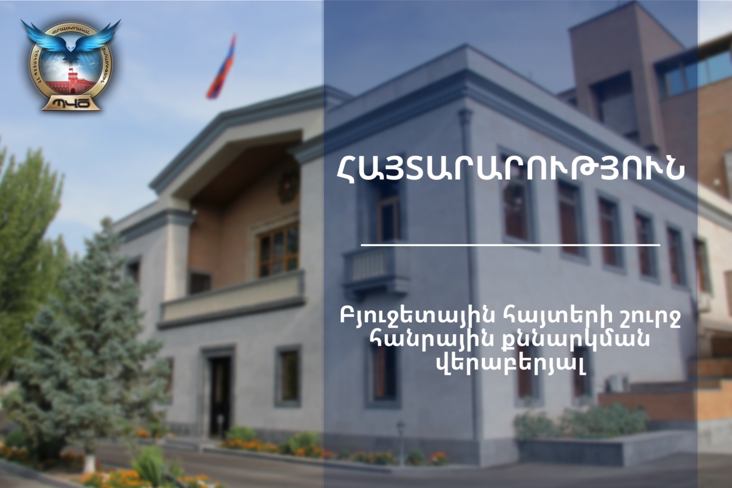 Տեղեկացնում ենք, որ ս.թ. ապրիլի 5-ին՝ ժամը 14:30-ին, ՀՀ պետական վերահսկողական ծառայության Մաշտոցի պող. 47 հասցեում գտնվող վարչական շենքում տեղի է ունենալու ՀՀ պետական վերահսկողական ծառայության 2025-2027թթ. ՄԺԾԾ նախագծի մշակման աշխատանքների շրջանակներում բյուջետային հայտերի շուրջ քննարկումներ՝ շահագրգիռ քաղաքացիական հասարակության կազմակերպությունների (այսուհետ՝ ՔՀԿ) հետ: Խնդրում ենք քննարկումներին մասնակցել ցանկացող ՔՀԿ-ներին մինչև ս.թ. ապրիլի 3-ը ներառյալ, astghik.mkrtchyan@supervision.am Էլ. փոստի հասցեով ներկայացնել մասնակցության հայտ՝ կից ձևաչափին համաձայն (ներկայանալ անձը հաստատող փաստաթղթով): ՀՀ պետական վերահսկողական ծառայության 2025-2027թթ. միջնաժամկետ ծախսերի ծրագրի նախագծին կարող եք ծանոթանալ https://www.supervision.am/մժծծ-2025-2027/ հղմամբ: